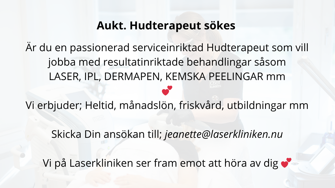 Arbetar på Laserkliniken inom avancerad hudvård och laserbehandlingar.